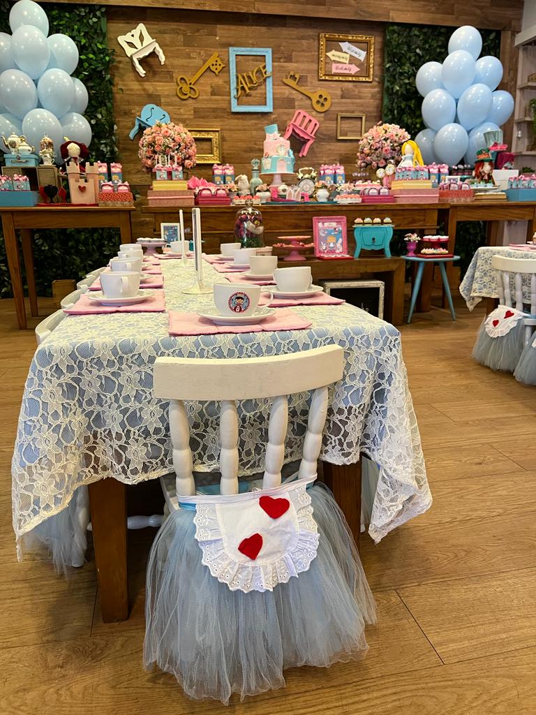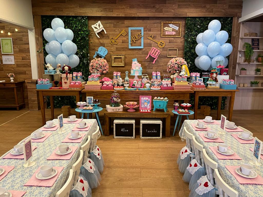 Embarque nessa aventura extraordinária com Alice, o Chapeleiro Maluco, Rainha de Copas e o Gato. Uma celebração onde a imaginação da história ganha vida, cheia de elementos mágicos, mas sem perder a meiguice da Alice. Uma decoração mais do que especial, uma verdadeira jornada pelo país das maravilhas!