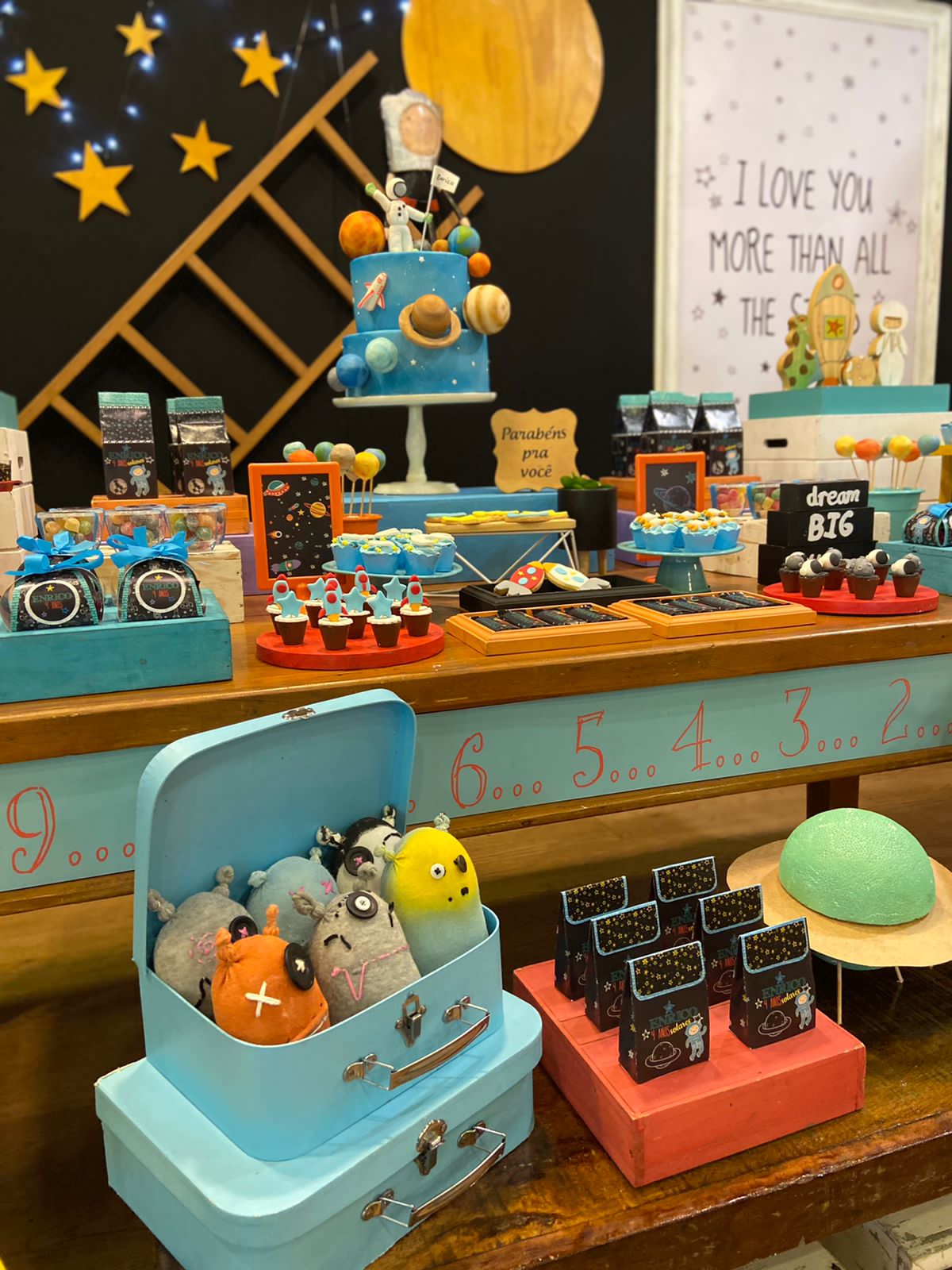 Prepare-se para decolar em uma aventura intergaláctica, onde as estrelas se tornam o cenário perfeito! Lua, foguetes, planetas, alienígenas e o Astronauta, personagem principal dessa história, se completam para essa festa ser uma verdadeira experiência espacial. Vista-se como um astronauta, explore o desconhecido e mergulhe em atividades de outro mundo!