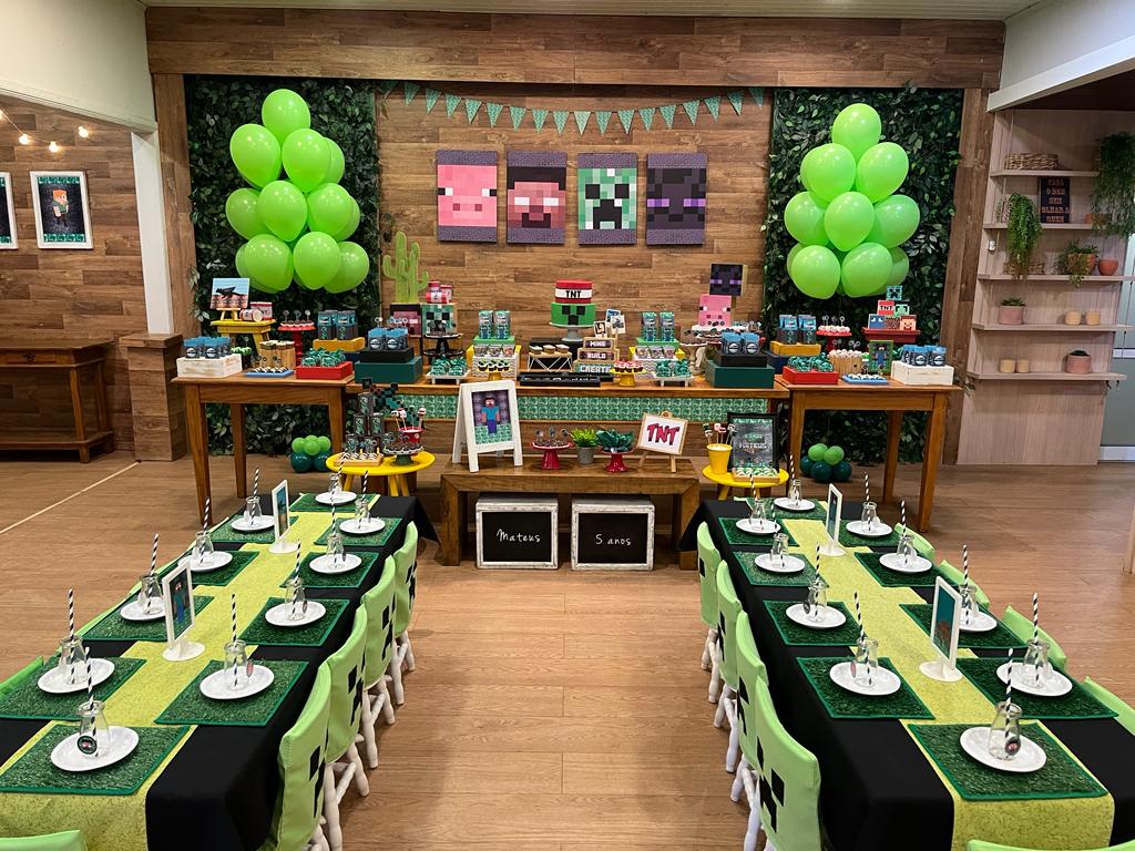 Este jogo revolucionário, que conquistou milhões de jogadores ao redor do mundo, é conhecido por sua liberdade de construção, exploração e criatividade sem limites. Nesta festa, vamos nos juntar aos famosos blocos e personagens de Minecraft para tornar seu dia repleto de diversão, desafios e muita imaginação.