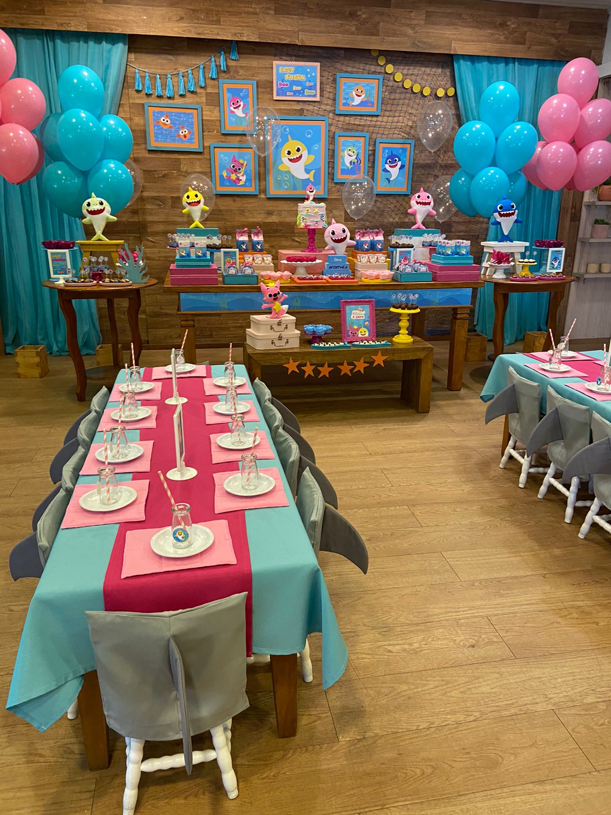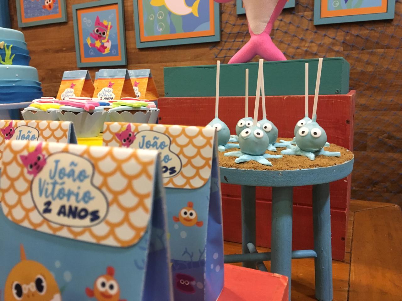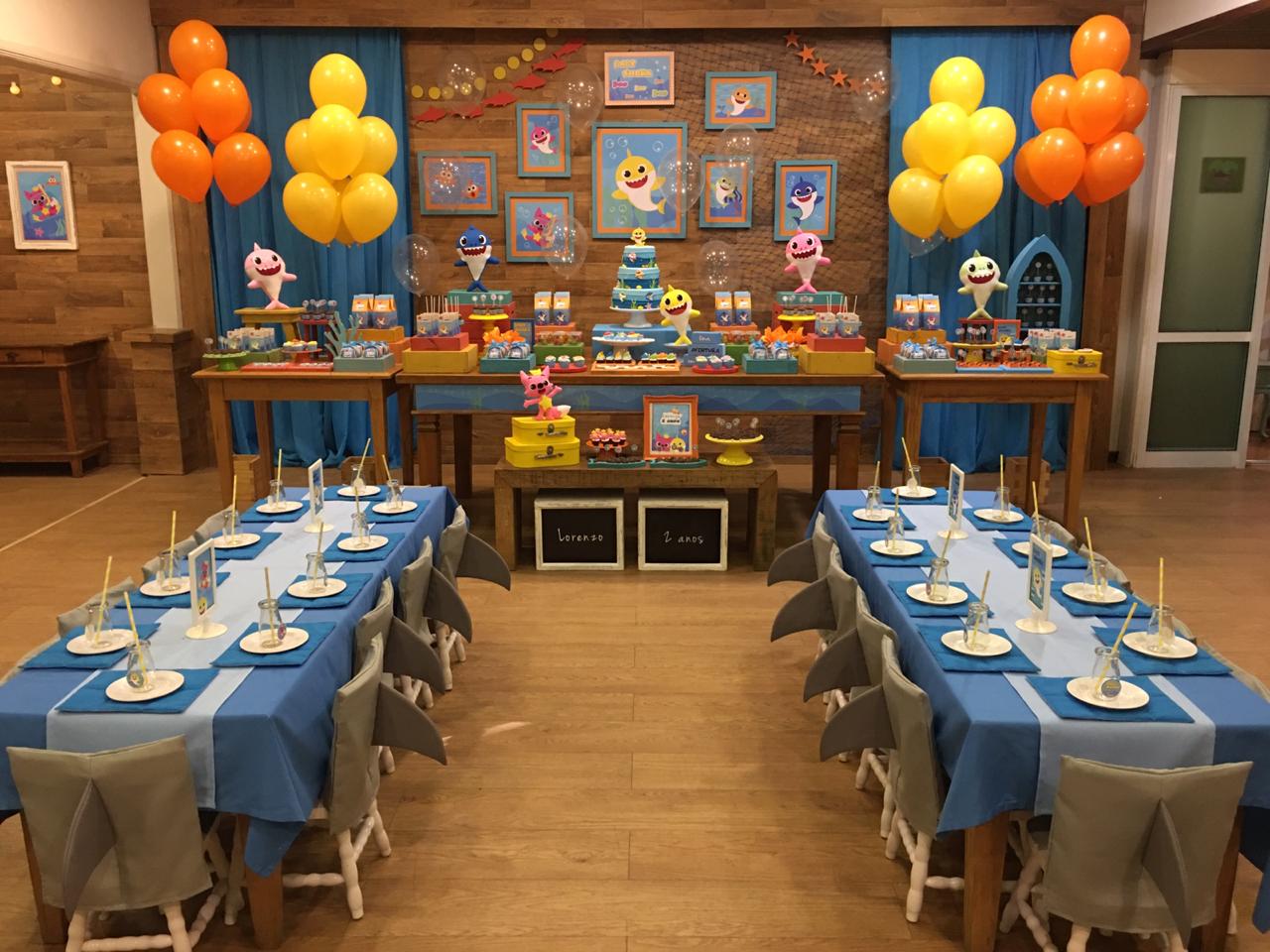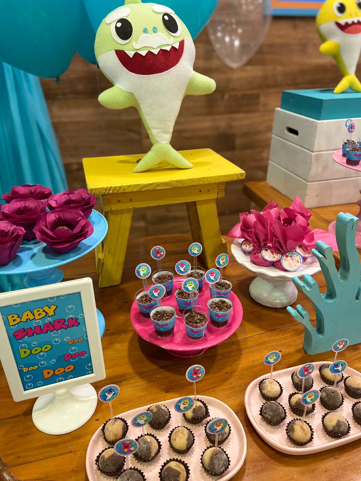 Em um oceano de diversão, esta decoração é perfeita para os pequenos fãs do desenho. Cada detalhe é uma alegria para os olhos. Os personagens adoráveis do Baby Shark, como Pinkfong e sua família, estarão presentes para encantar os convidados. Prepare-se para cantar e dançar ao som das músicas contagiantes enquanto todos exploram a magia do oceano em um ambiente festivo e cheio de sorrisos.