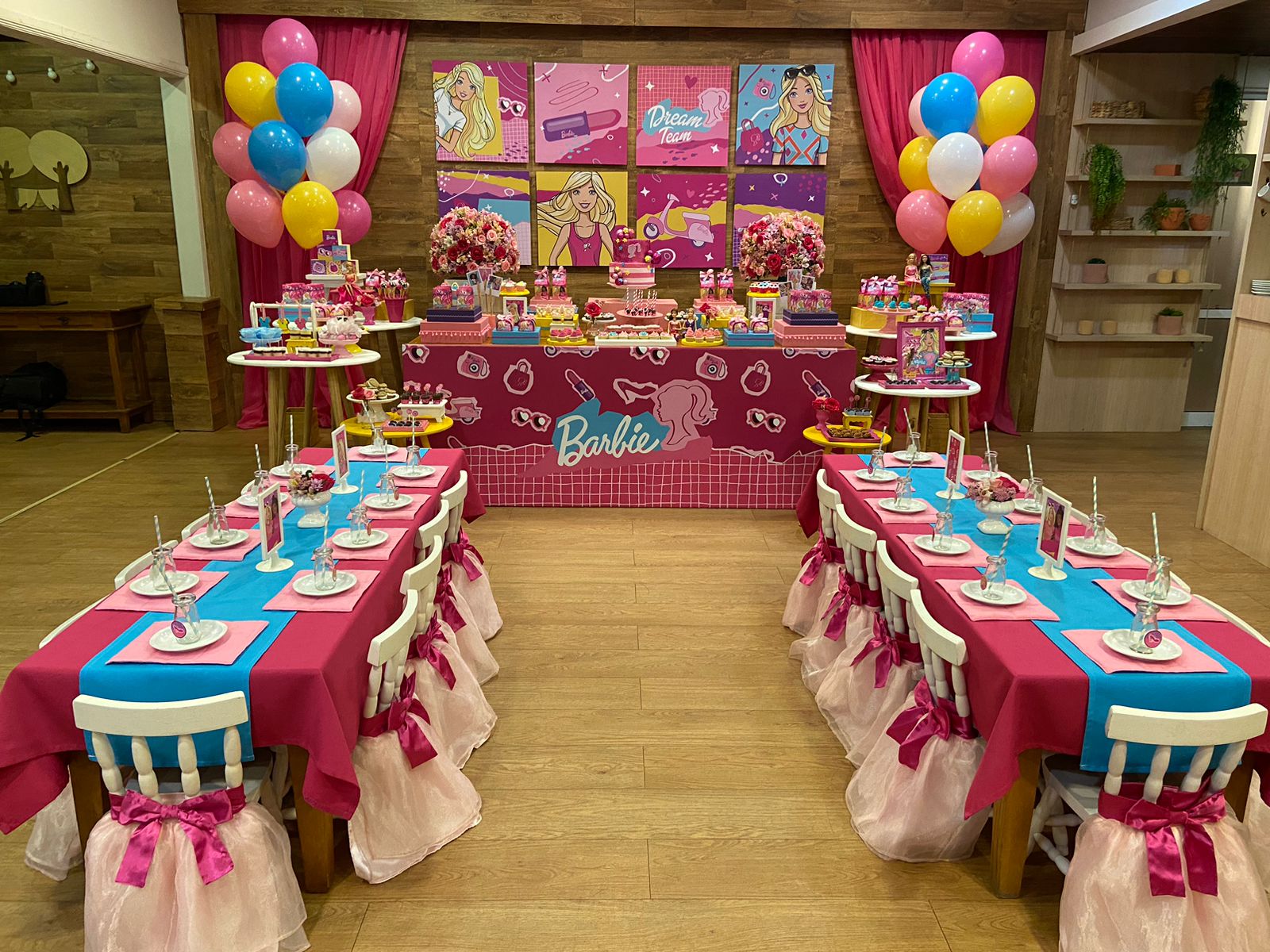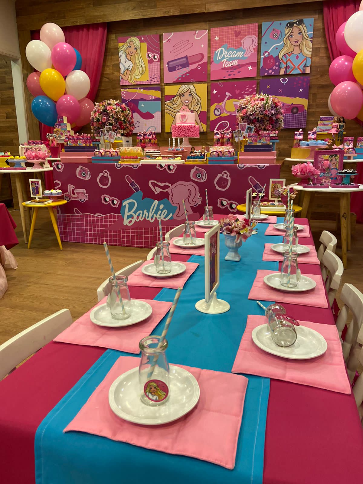 Um mundo de glamour e diversão na nossa festa com o tema da Barbie! Com uma decoração deslumbrante, muitos tons de rosa, cada detalhe transporta os convidados para o universo encantado da boneca mais fashion do mundo. E não poderia faltar sapatos, batons, bolsas, óculos e muitos modelitos, não é mesmo? Esse tema é o preferido das meninas vaidosas e charmosas, que podem aproveitar a sua festa como verdadeiras estrelas!