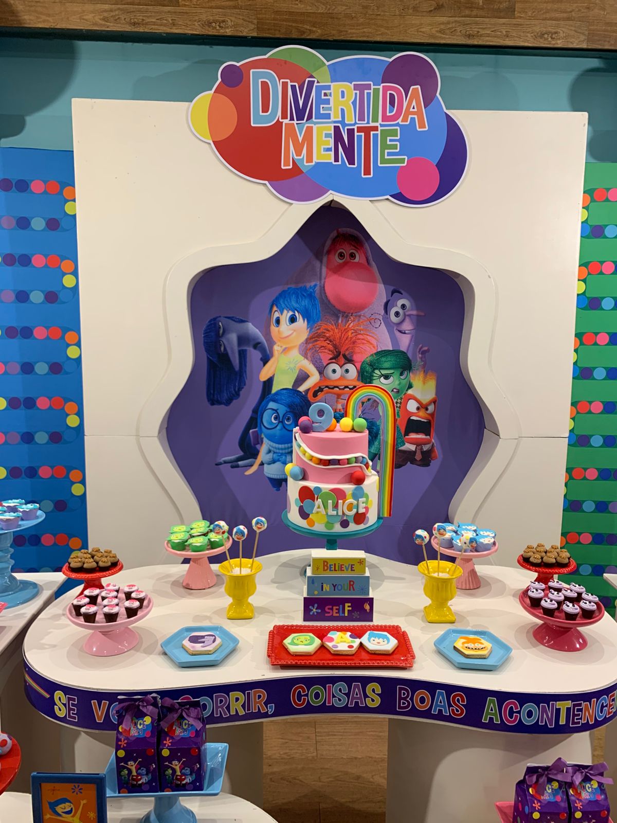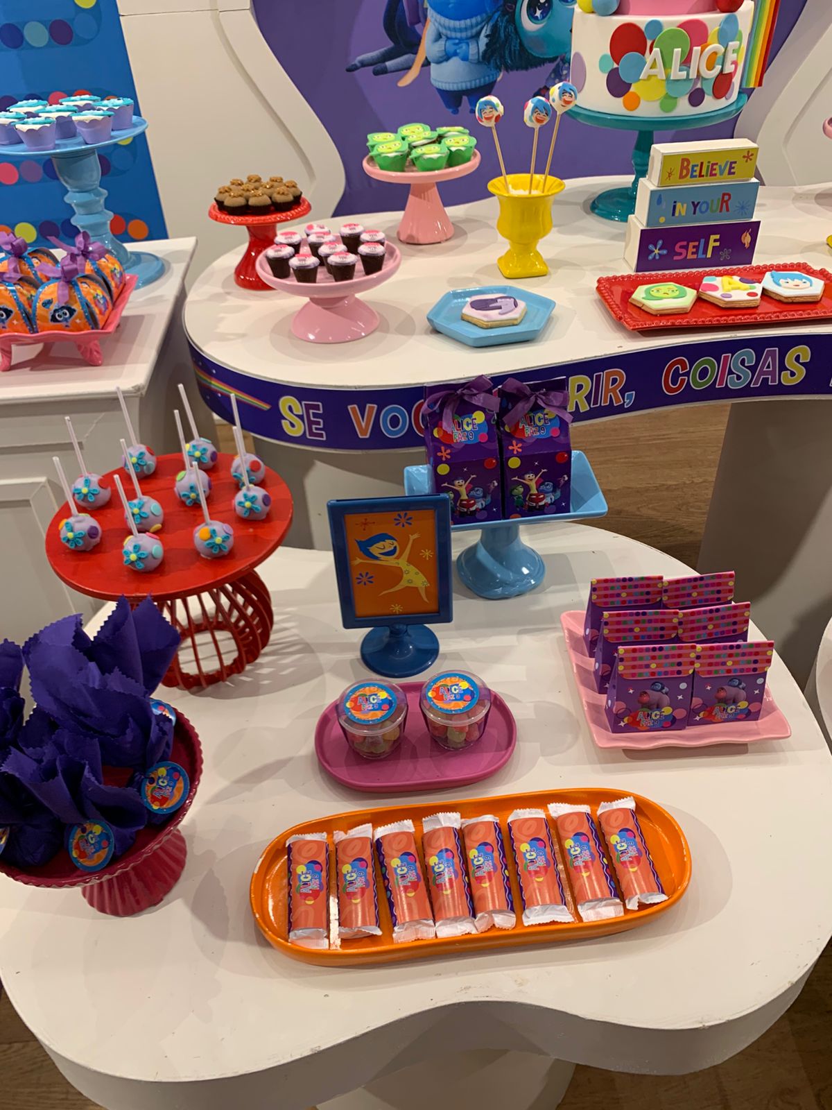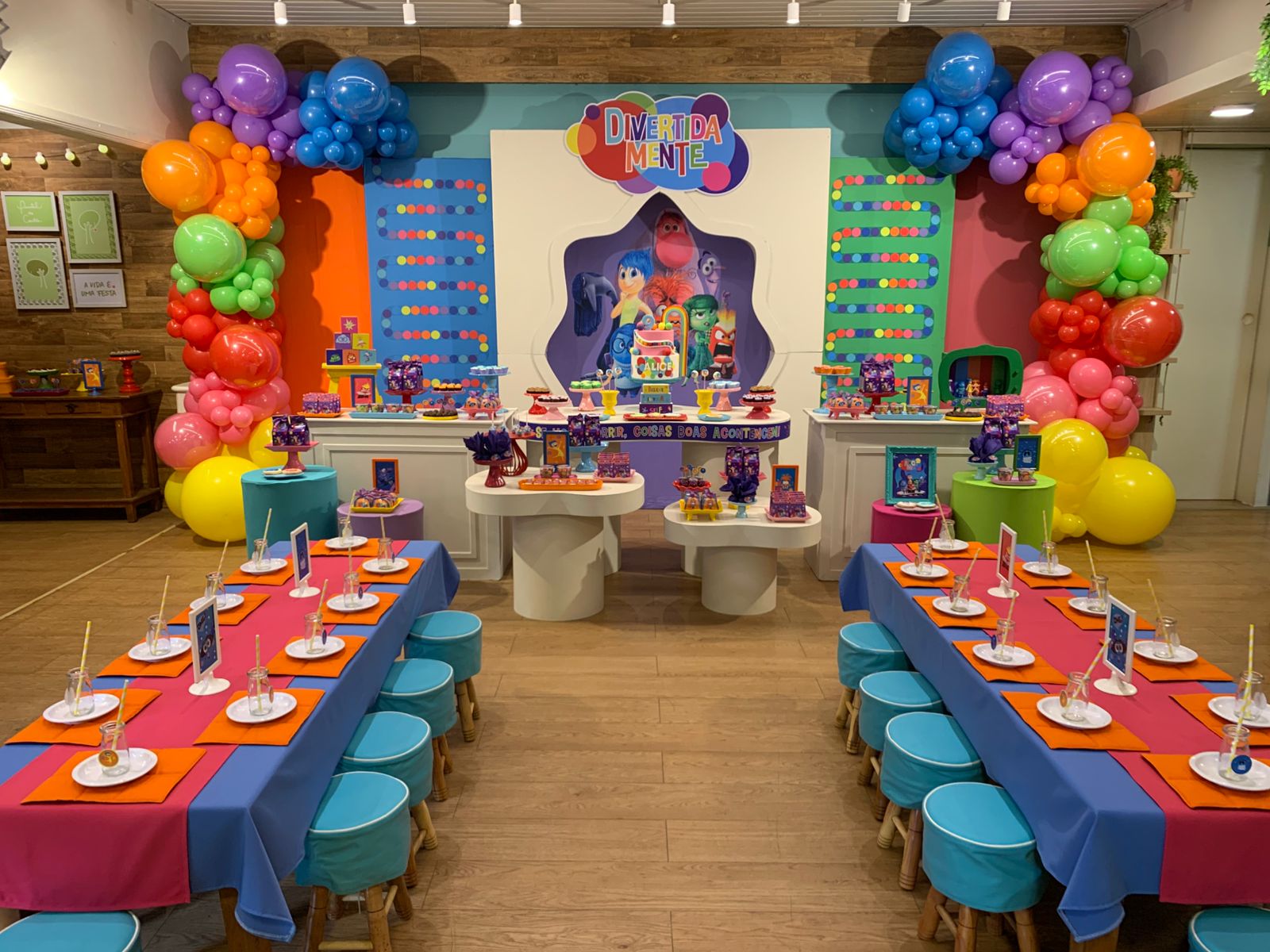 Um tema vibrante e cheio de emoções! A decoração é rica em cores, seguindo a identidade visual do filme, criando um ambiente lúdico, expressivo e divertido, onde cada detalhe convida as crianças a explorarem sentimentos com alegria e imaginação.