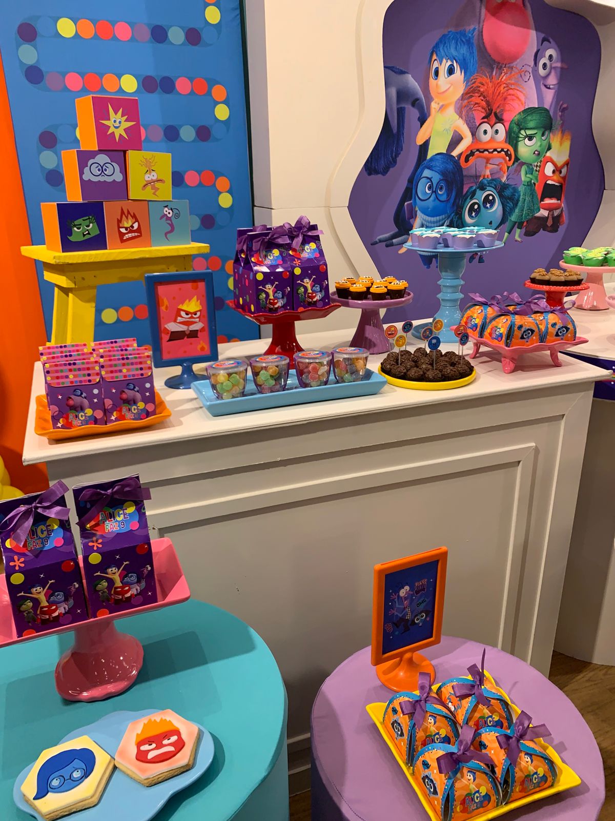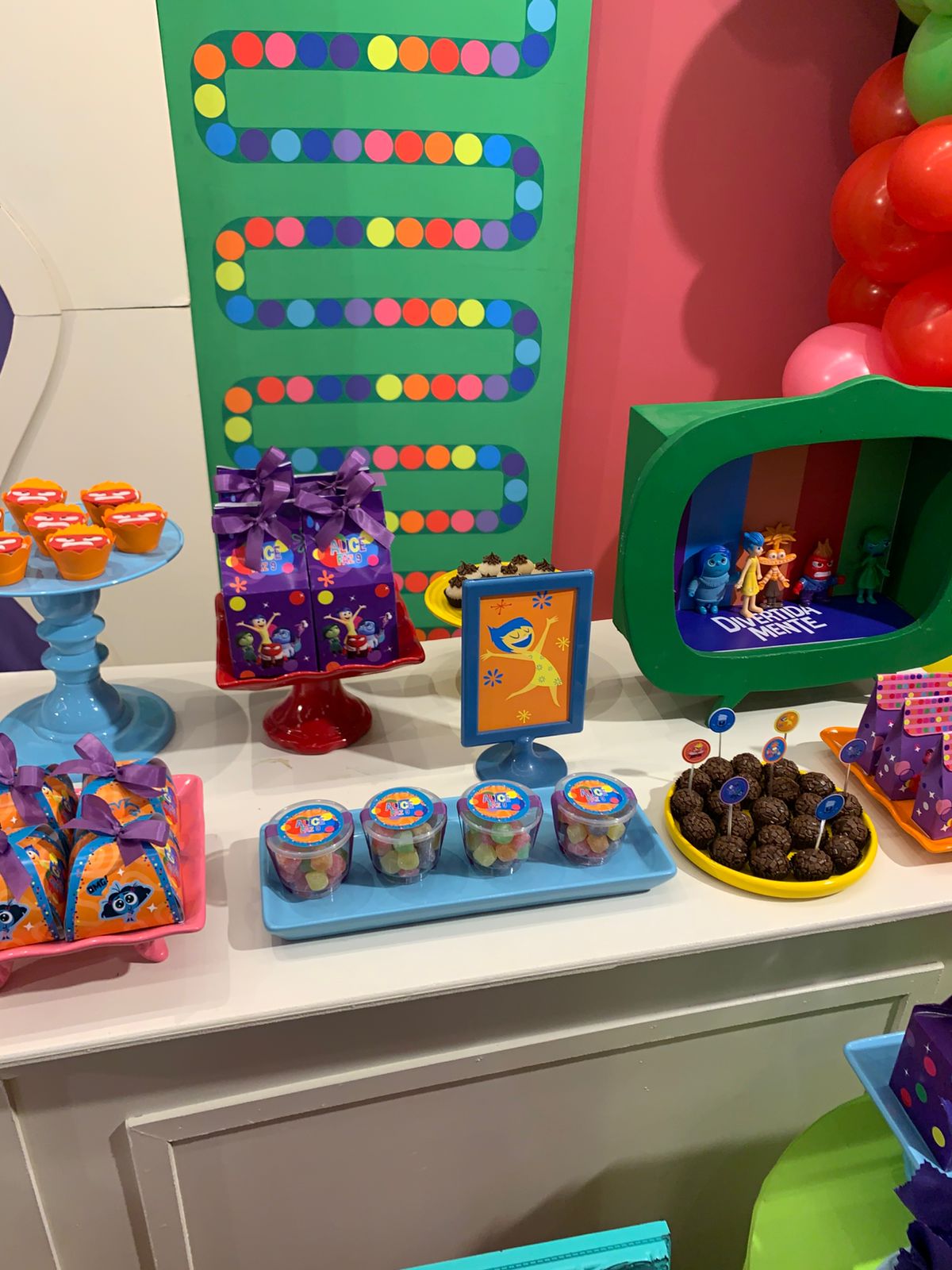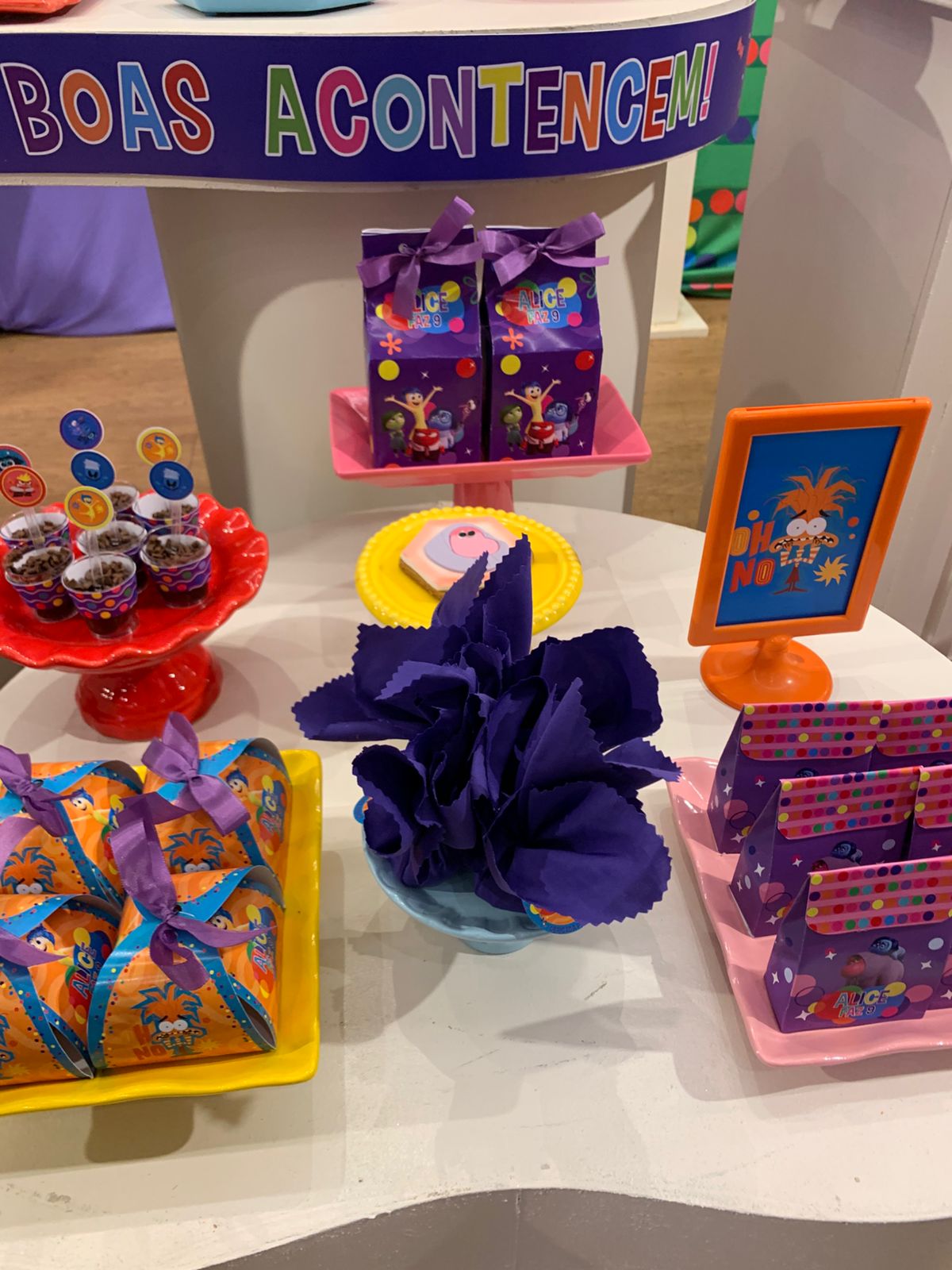 Um tema vibrante e cheio de emoções! A decoração é rica em cores, seguindo a identidade visual do filme, criando um ambiente lúdico, expressivo e divertido, onde cada detalhe convida as crianças a explorarem sentimentos com alegria e imaginação.