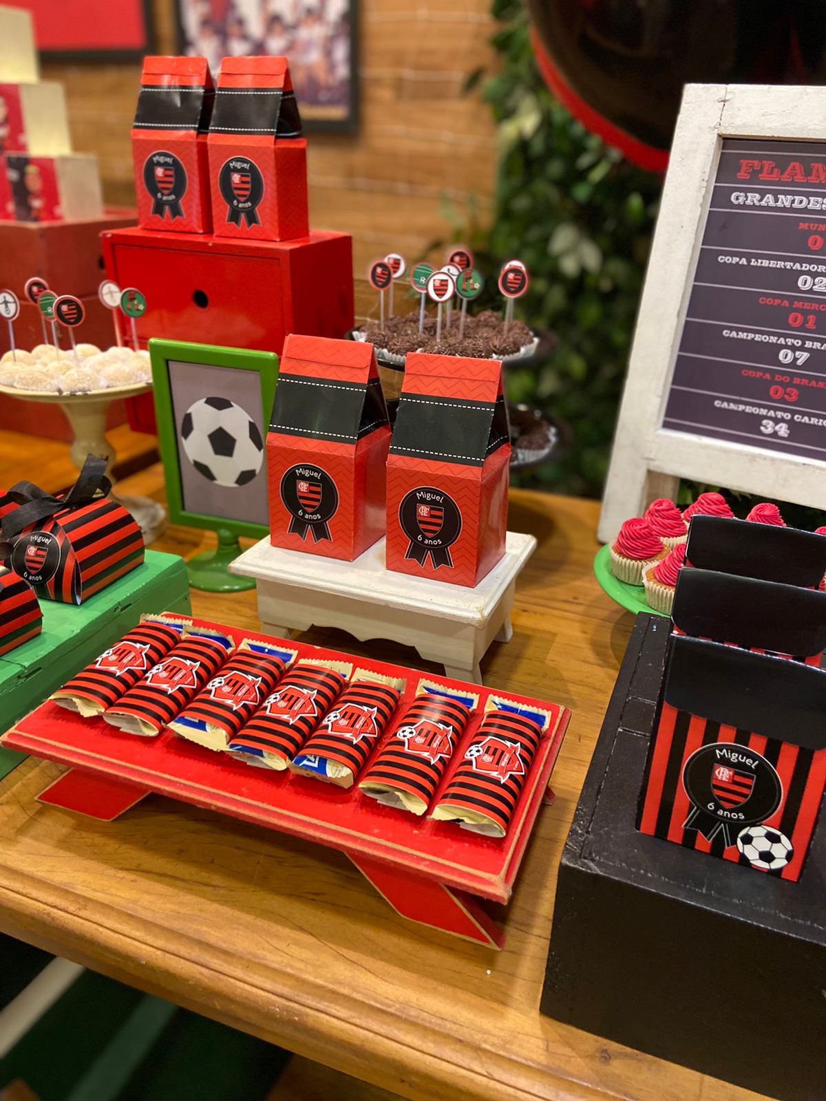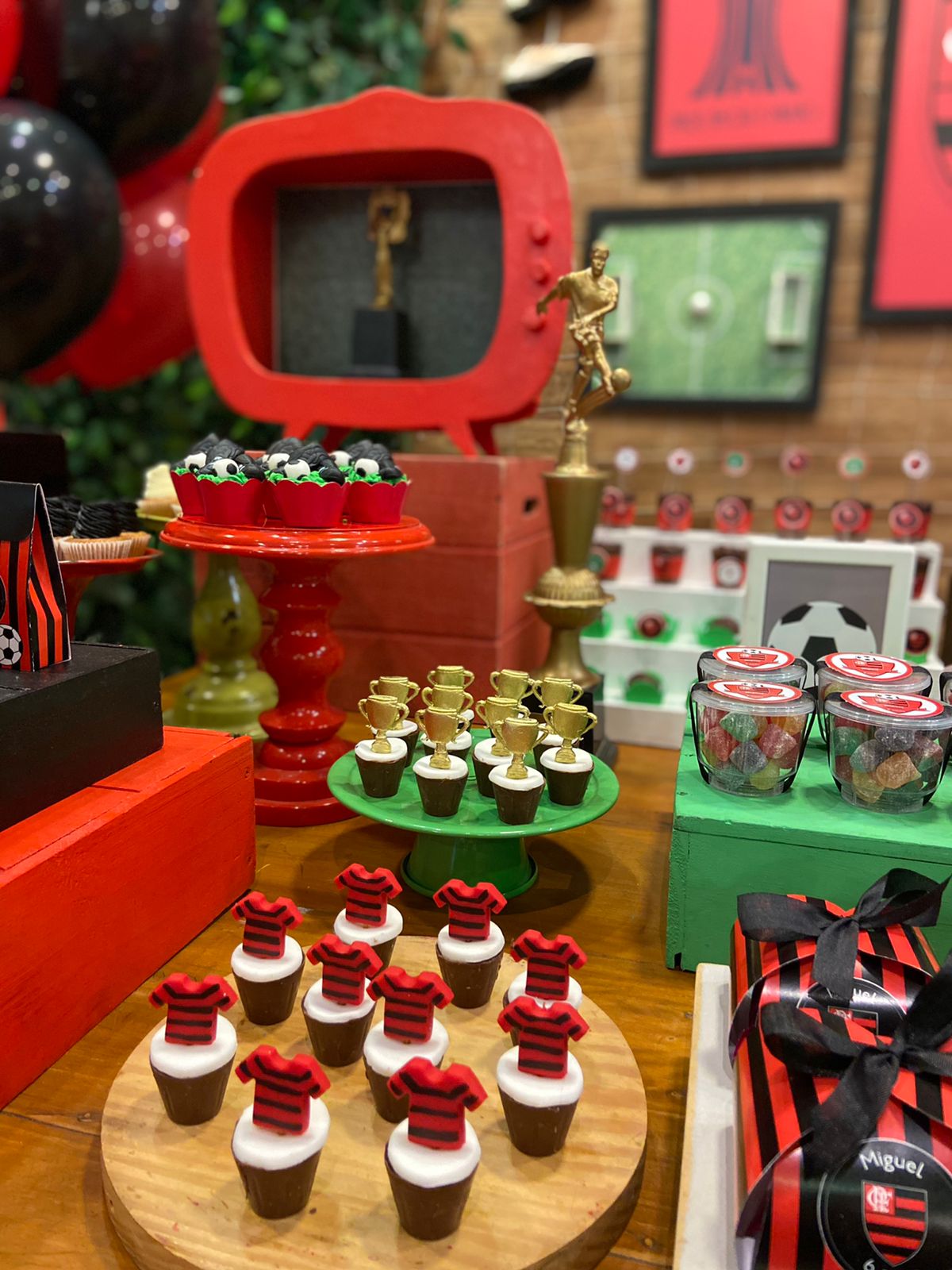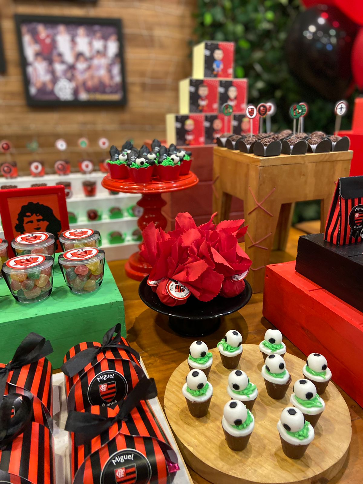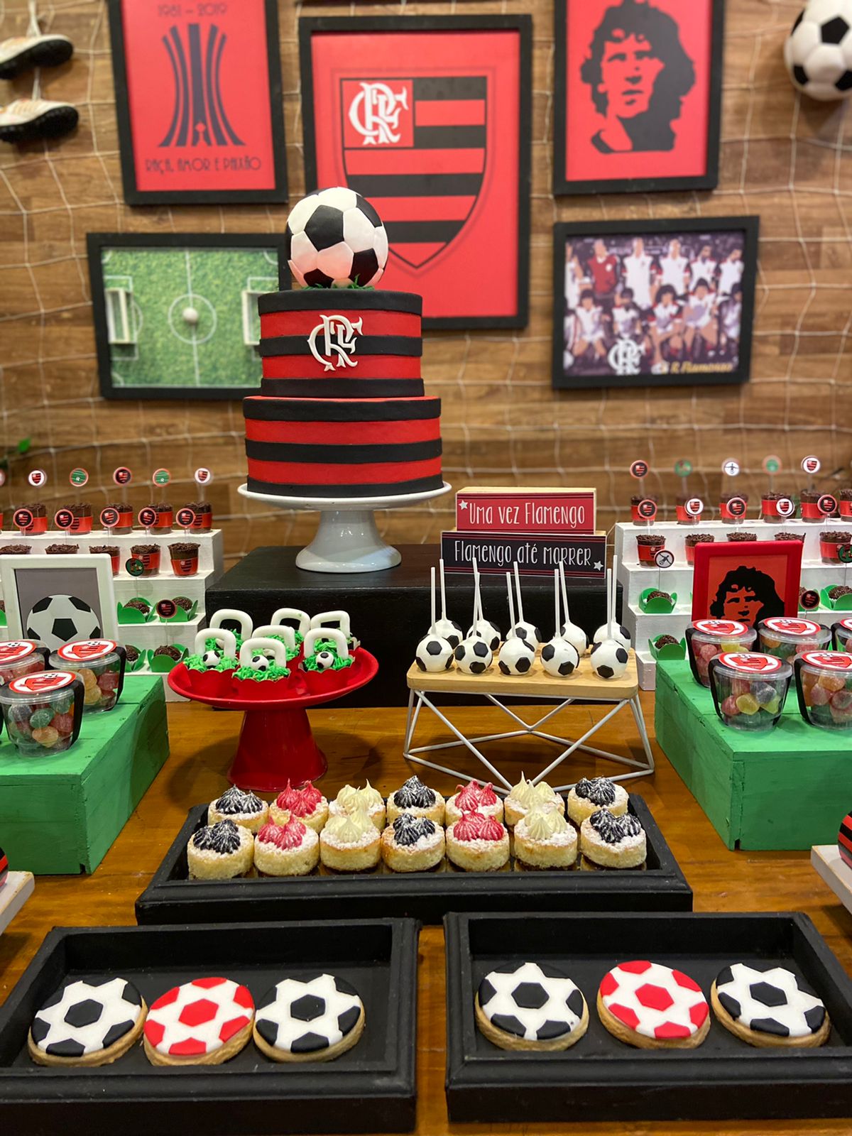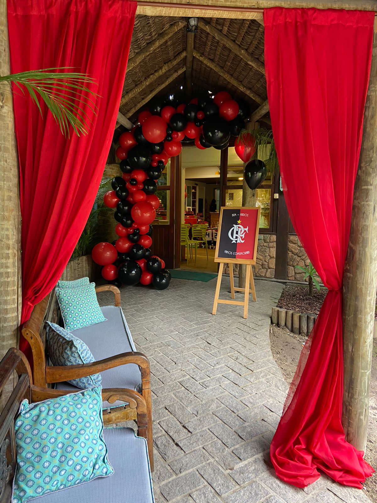 FlaFesta: Uma Celebração Rubro-Negra! Uma decoração que exala o espírito rubro-negro com as cores preto e vermelho, fotos dos craques do time e uma decoração inspirada no nosso amado gramado, que reflete a intensidade e a paixão pelo Flamengo. Não esqueça de registrar os momentos inesquecíveis no cantinho fotográfico do Mengão. Adereços e cenários temáticos proporcionarão a oportunidade perfeita para tirar fotos e eternizar o amor ao nosso Mengão.