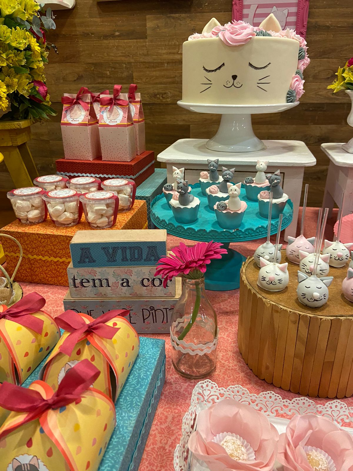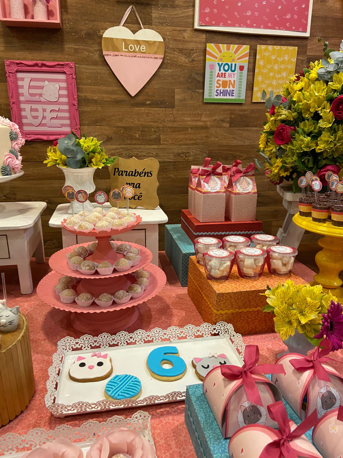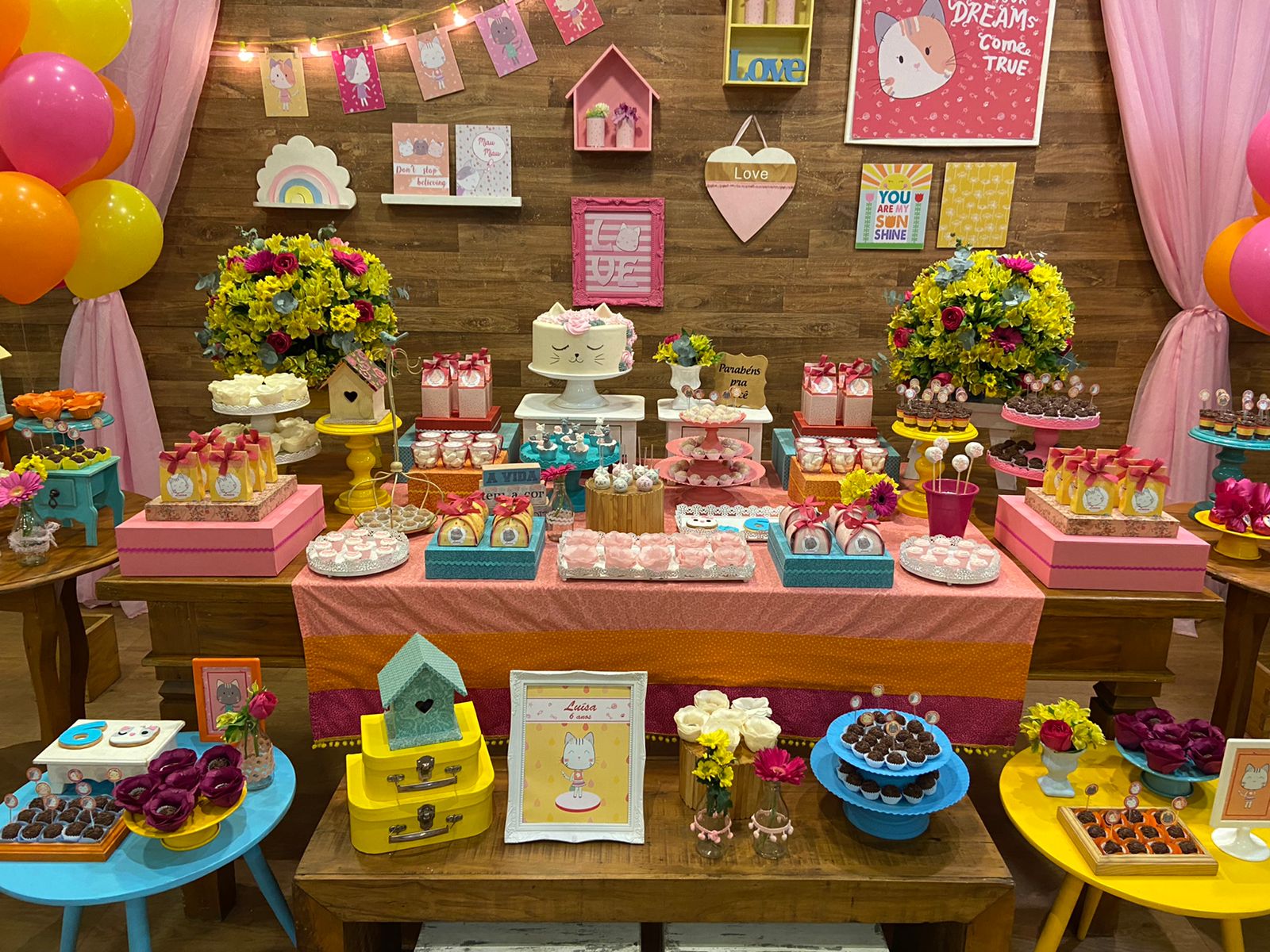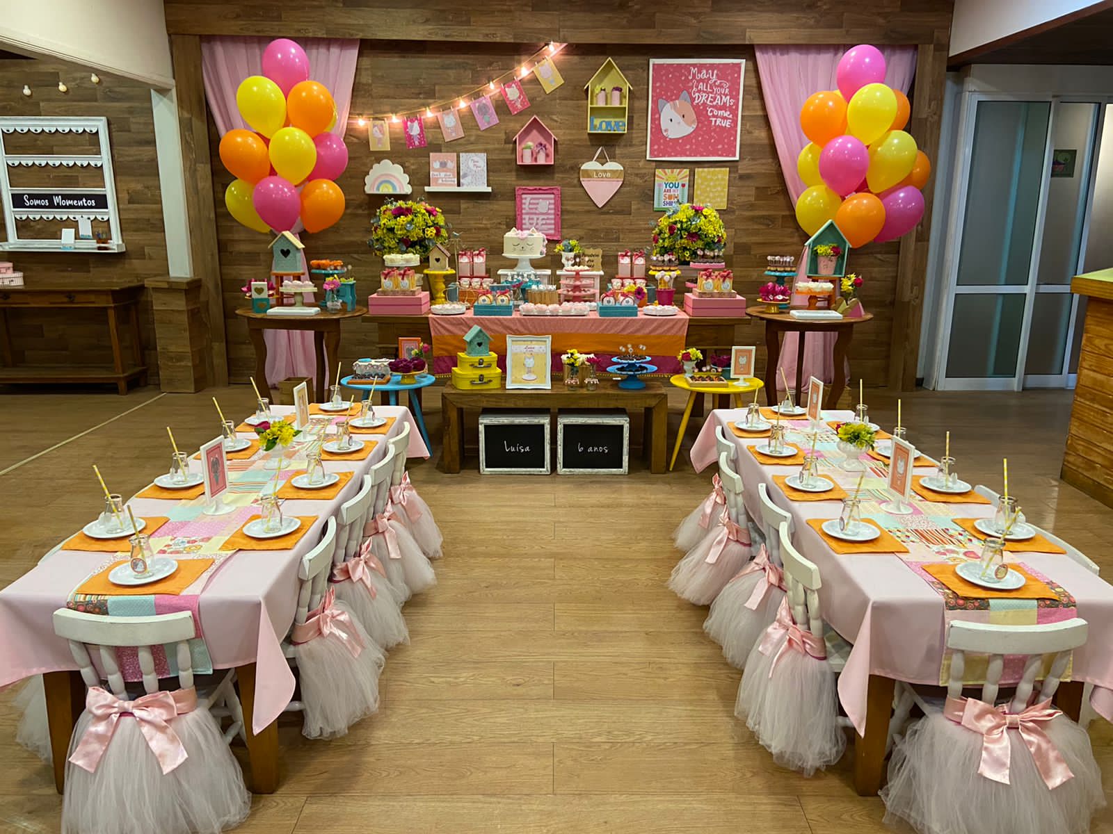 Uma festa dedicada aos amantes de gatinhos, repleta de cores suaves, lacinhos charmosos e muita delicadeza. Preparem-se para entrar no universo fofo desses adoráveis felinos, onde as tonalidades de rosa, amarelo e laranja criarão um ambiente encantador e cheio de carinho. Que cada “meowmento” seja recheado de sorrisos e memórias afetuosas!