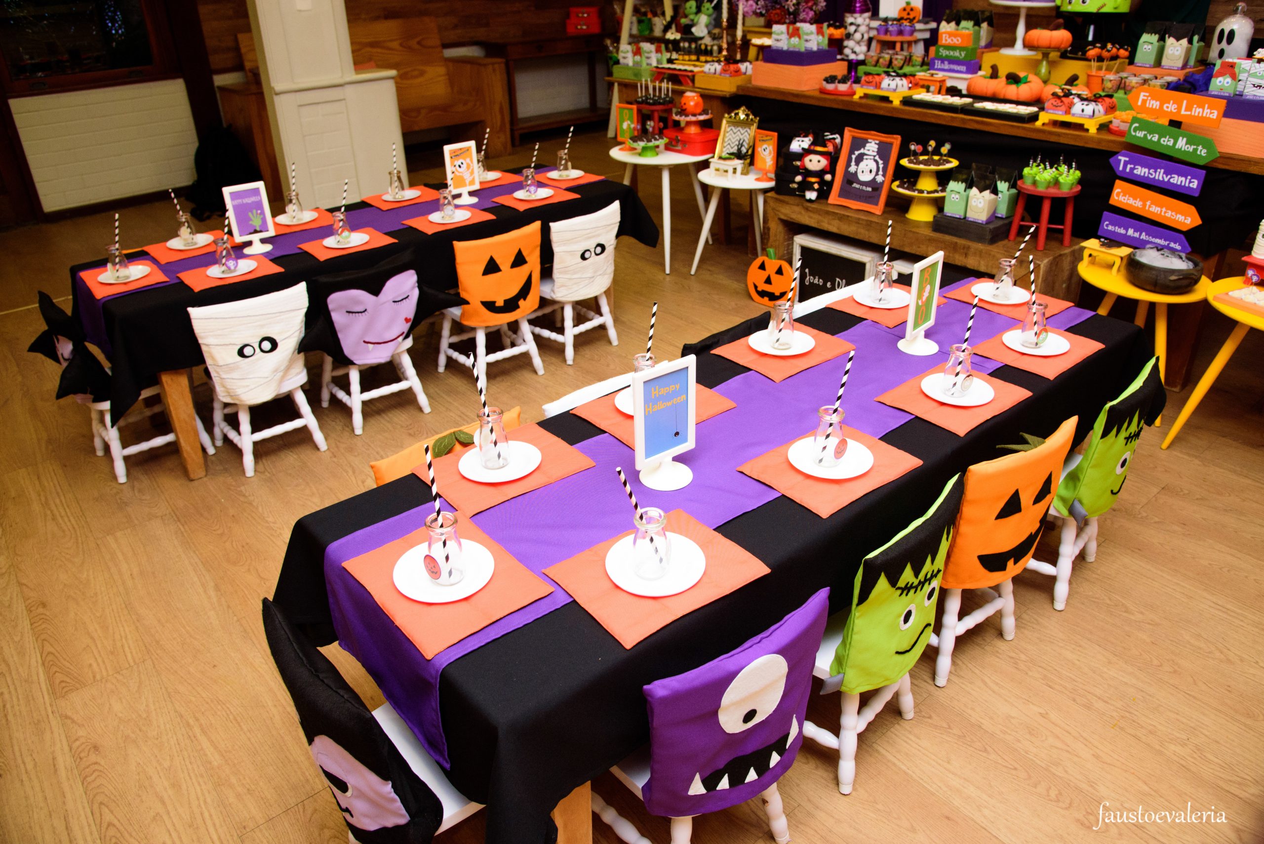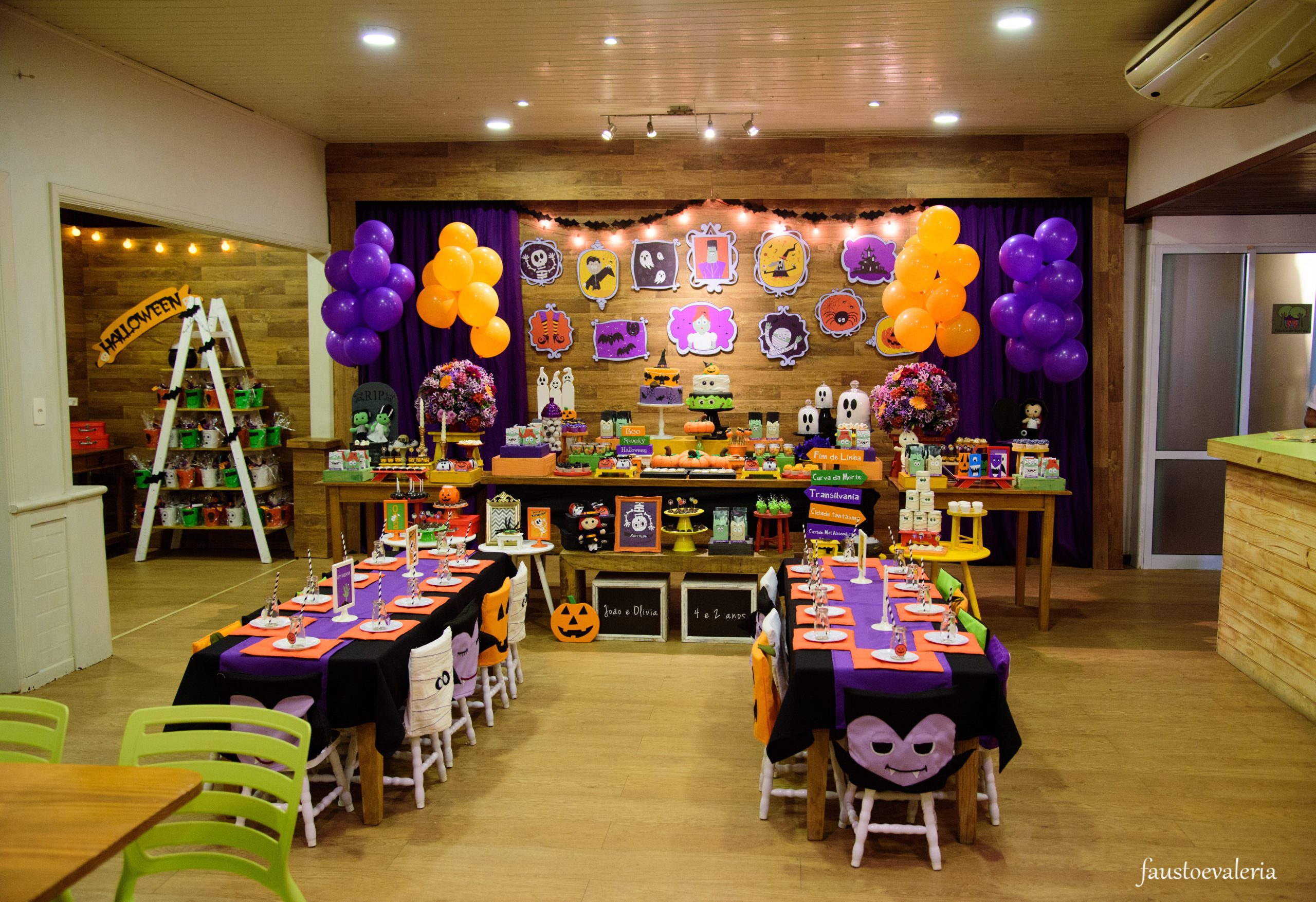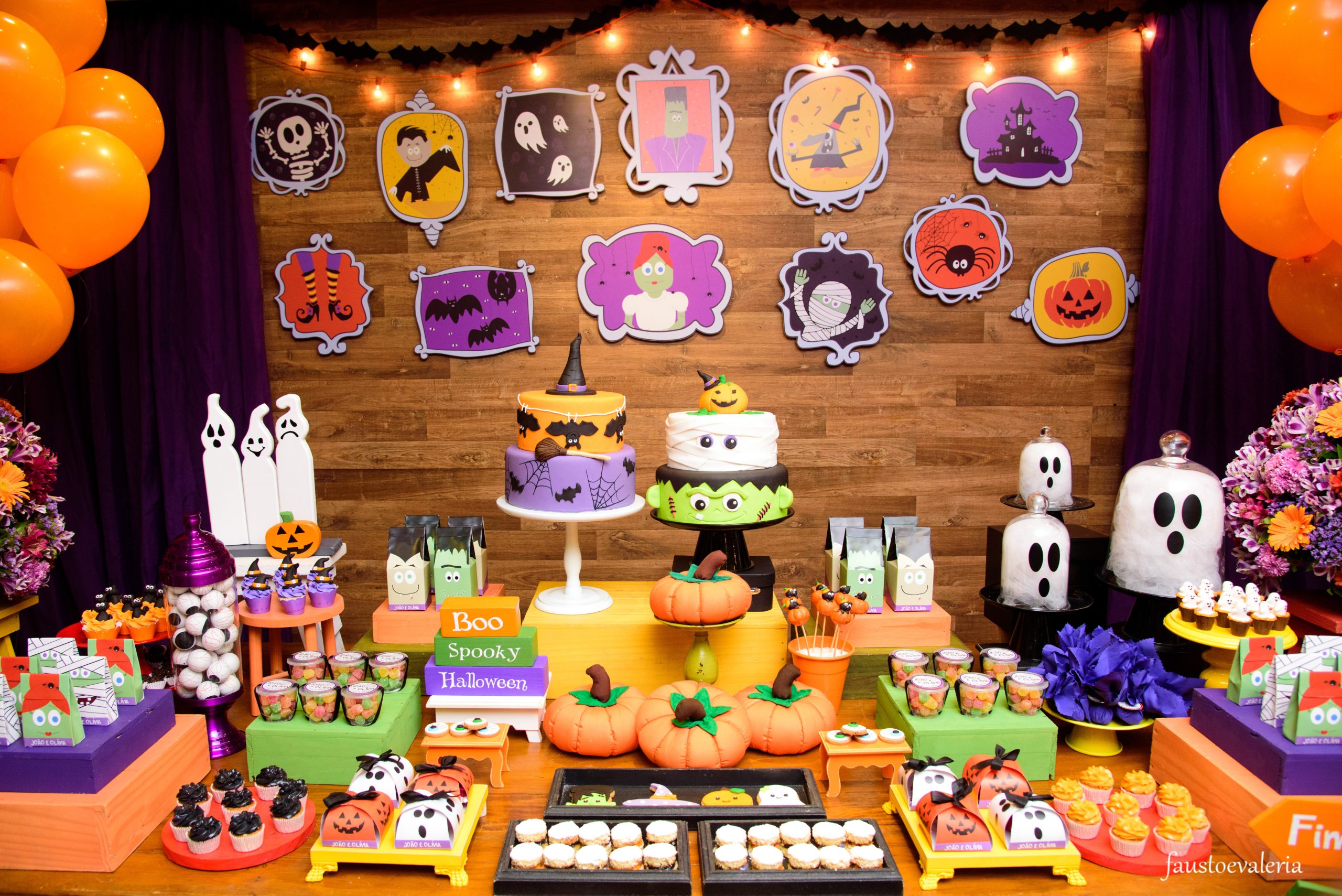 Uma decoração mágica e assustadoramente divertida envolve a festa com tema de Halloween, as cores vibrantes de laranja, preto e roxo darão vida a um mundo encantado, onde abóboras, bruxinhas, caveiras e múmias criarão uma atmosfera única de mistério e diversão para os pequenos.