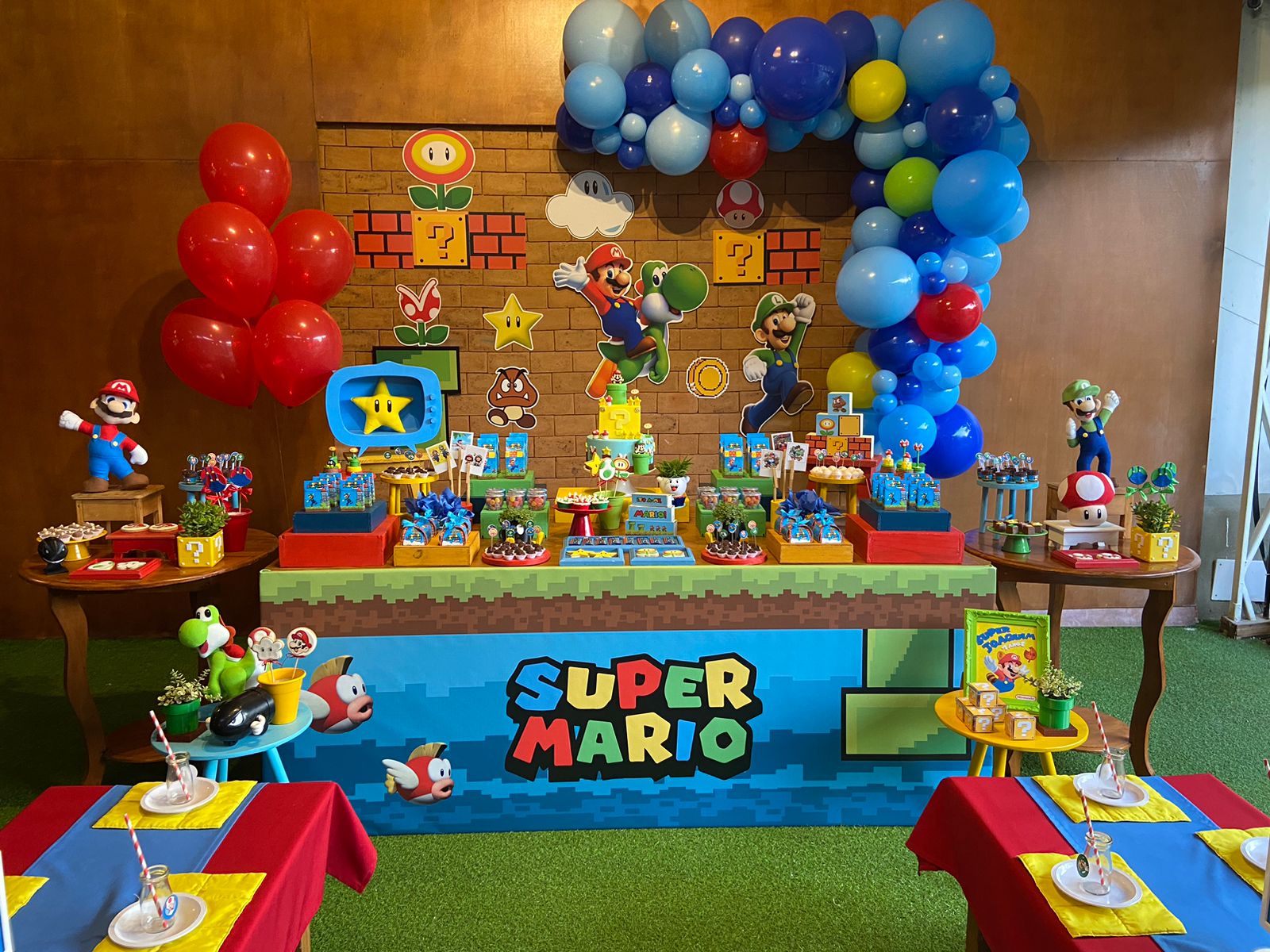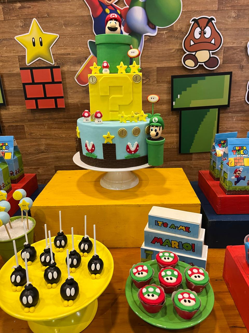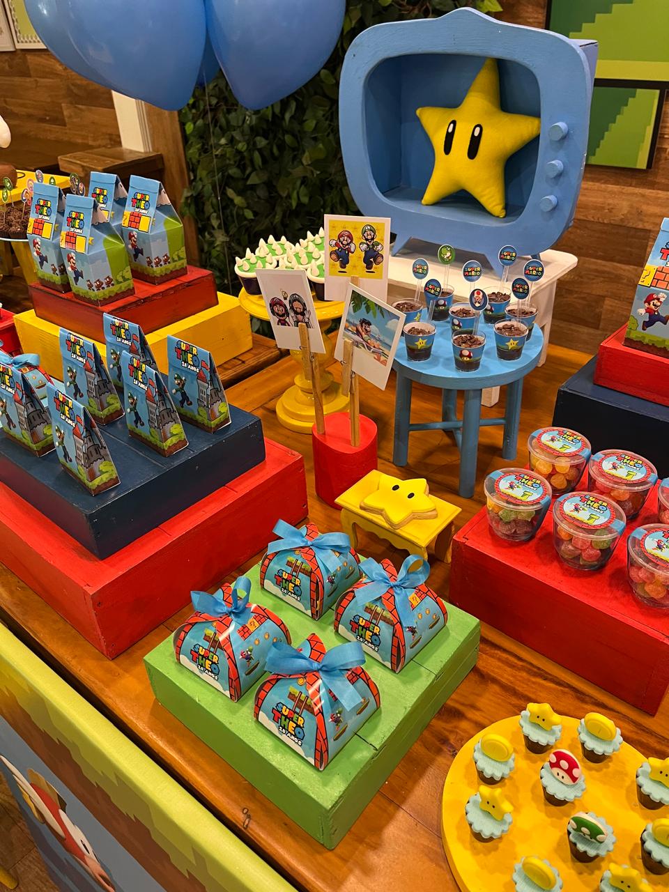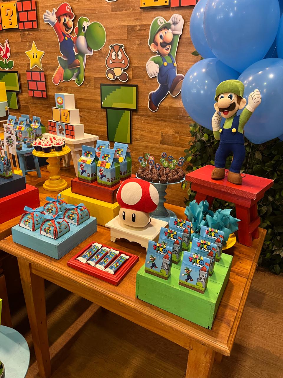 Nesta festa incrível inspirada no famoso jogo de videogame, a decoração remeterá a um cenário que lembra os icônicos níveis do jogo Super Mario Bros, com elementos decorativos que remetem aos personagens, cenários e itens favoritos dos fãs. Desde os famosos cogumelos até as famosas moedas douradas, cada detalhe evocará a atmosfera única do universo do Super Mario.