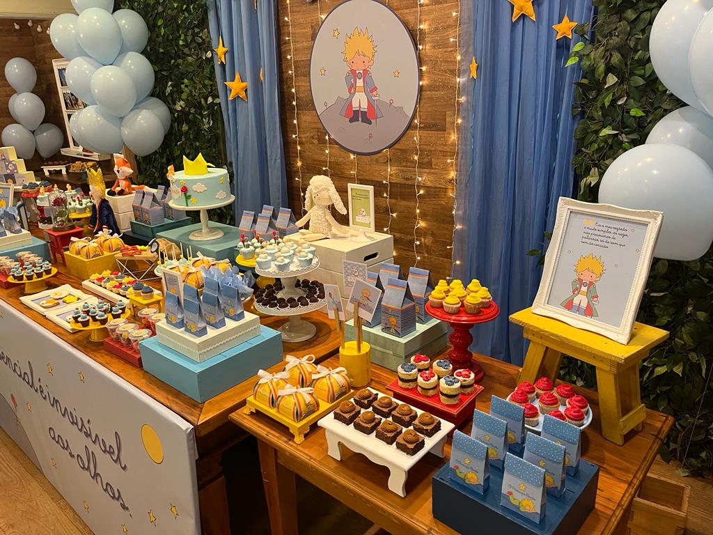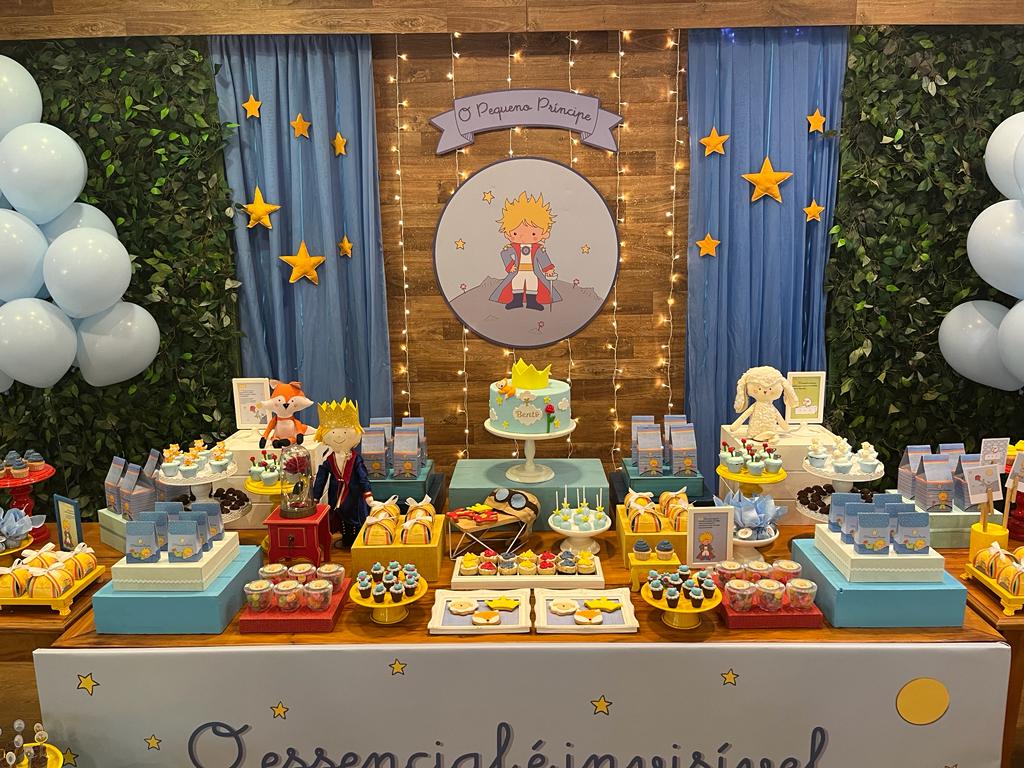 Este clássico conto do autor Antoine de Saint-Exupéry cativou gerações com sua mensagem atemporal sobre a importância da amizade, da imaginação e do amor. Com sua inocência e sabedoria, o Pequeno Príncipe nos ensina valiosas lições sobre amizade, solidão, e a importância de ver com o coração. O ambiente será decorado com delicadeza e sutileza, criando um ambiente de encantamento e aventura. Painéis decorativos com imagens do Pequeno Príncipe, balões em tons de azuis e elementos estelares que remetem à história.