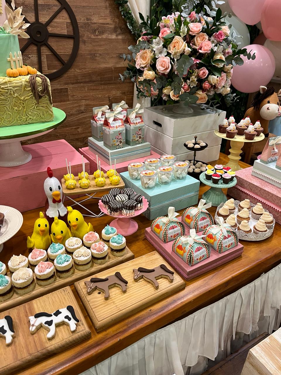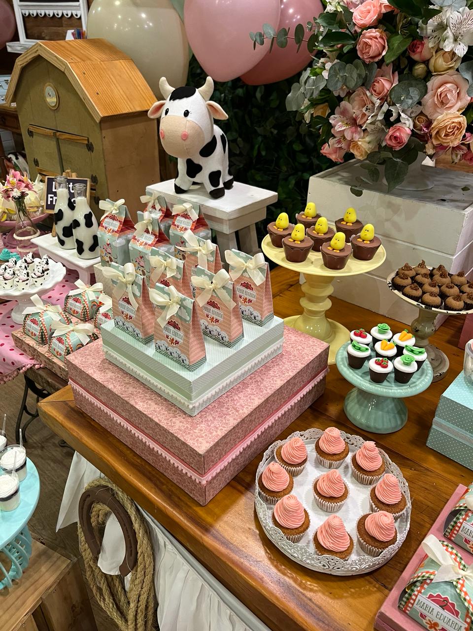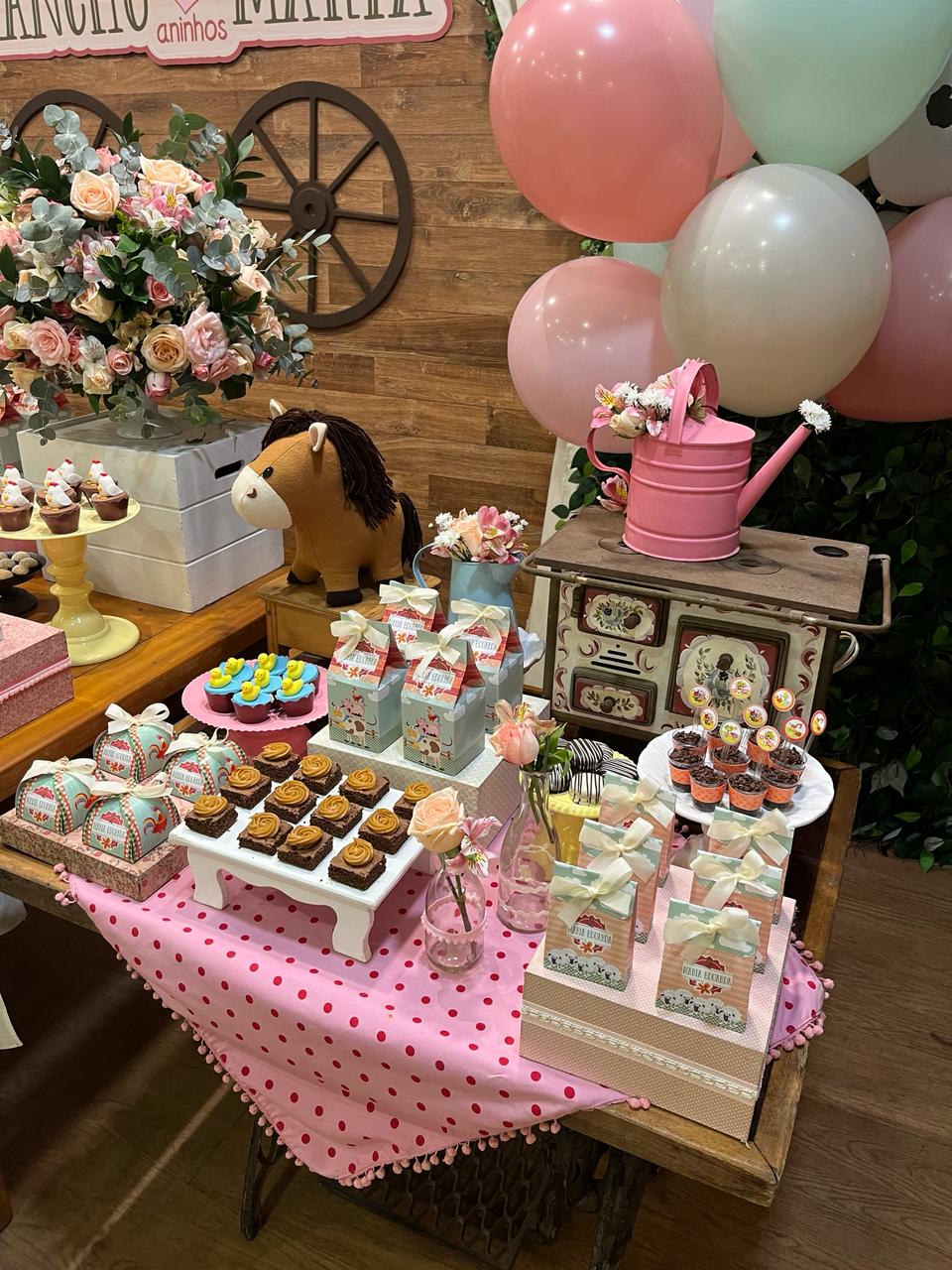Na decoração desta festa, vamos nos transportar para o clima descontraído e rústico de uma autêntica fazenda. Teremos elementos como feno e rodas de carroça que criarão uma atmosfera genuína de rancho. Não poderiam faltar os adoráveis bichinhos que habitam as fazendas, como galinhas, porcos e vacas, que estarão presentes nas cadeirinhas.