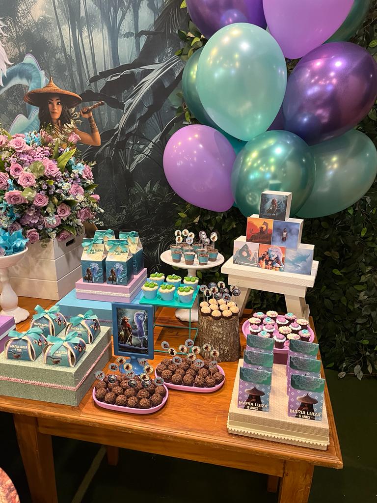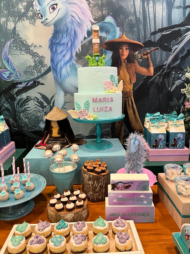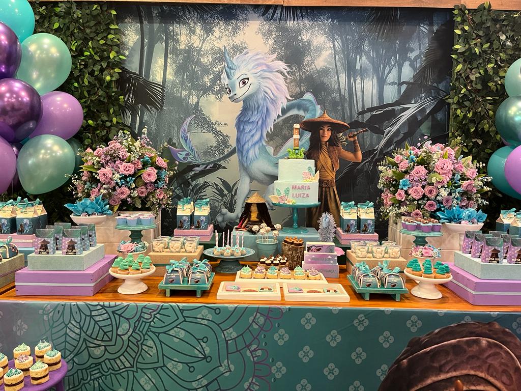 Adentre o vibrante e místico mundo de Kumandra com a festa temática inspirada no filme Raya e o Último Dragão! Nesta jornada, somos levados a um reino de fantasia onde a coragem e a amizade se destacam. Na decoração desta festa, vamos recriar o ambiente mágico de Kumandra, com uma paleta de cores que remete aos cenários exuberantes do filme.
