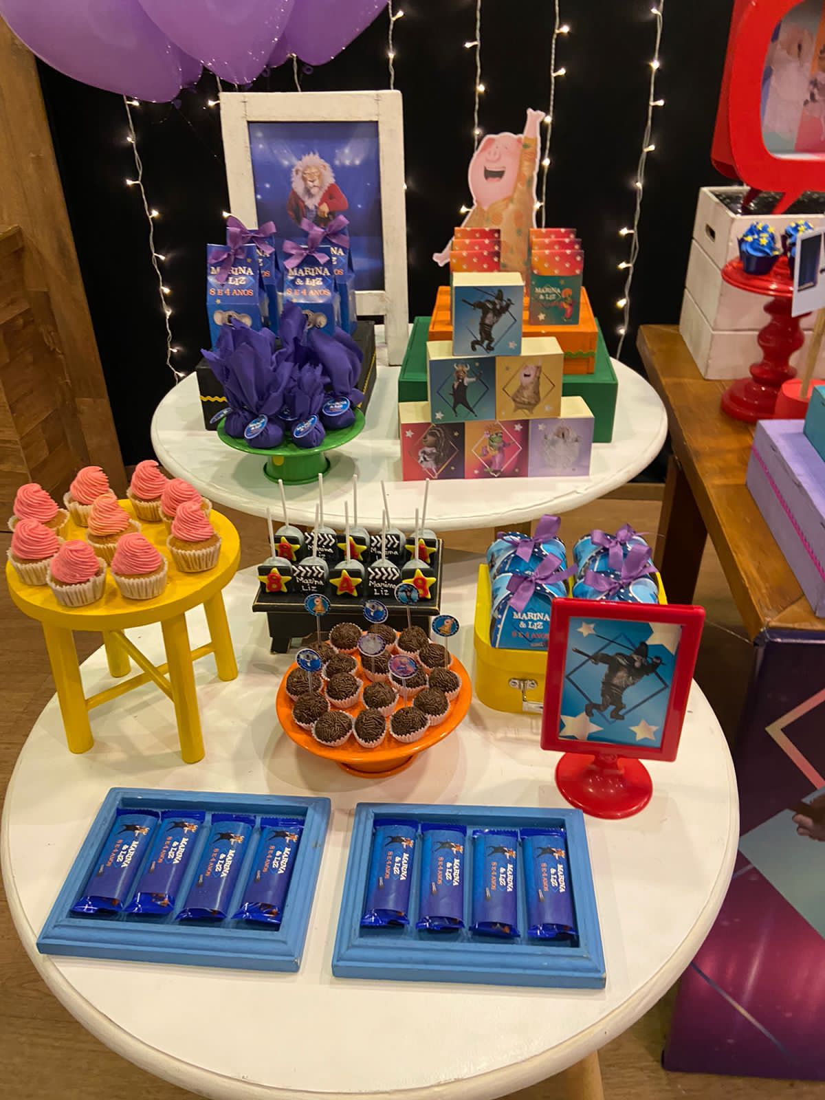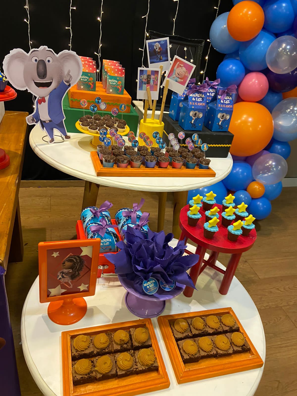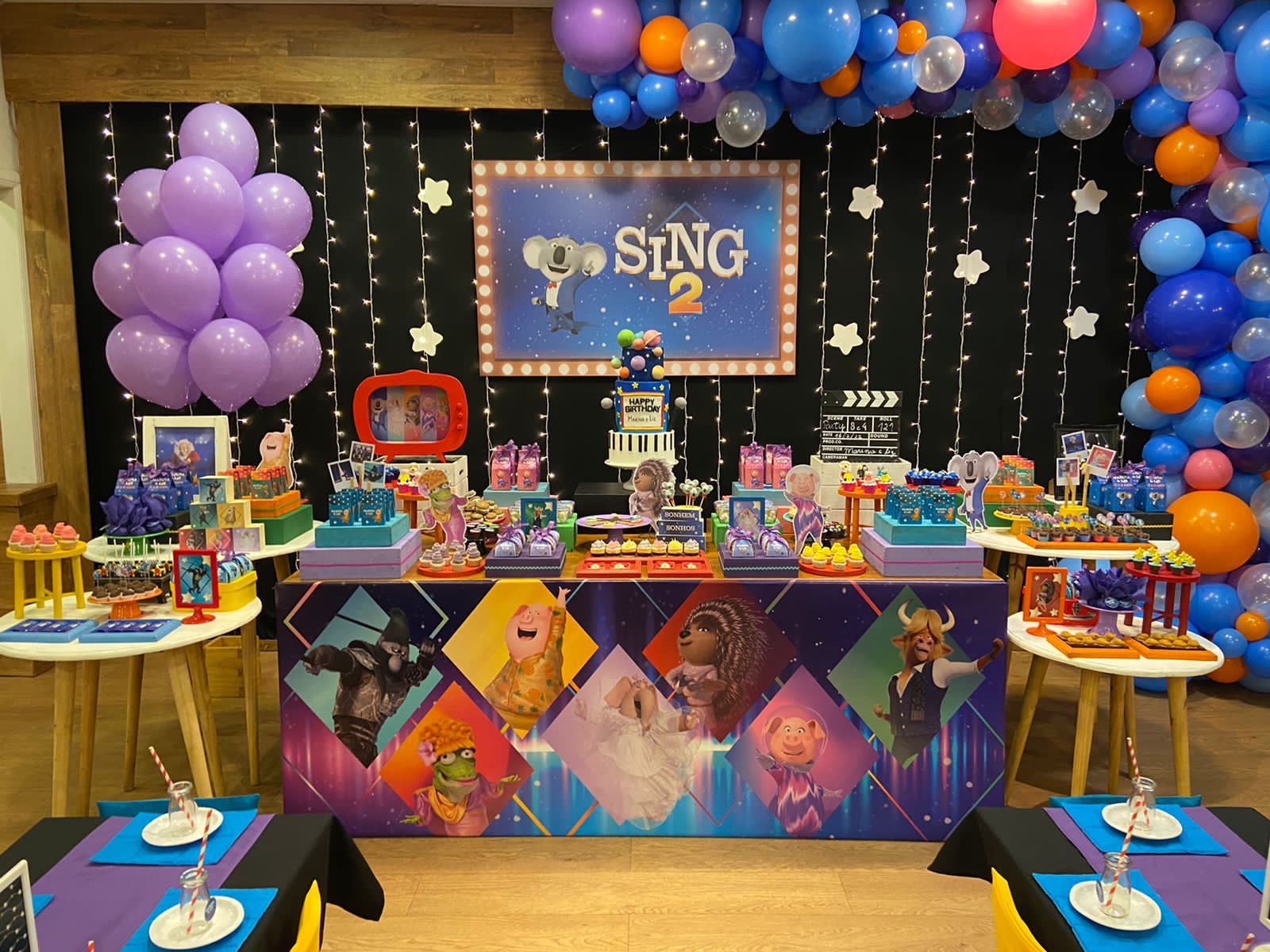 Sing 2 nos leva ao mundo dos sonhos e aspirações dos animais talentosos que participam de um grande concurso musical. Com suas personalidades vibrantes e performances emocionantes, os personagens conquistam o coração do público em uma jornada repleta de música, amizade e superação. Para trazer a magia da festa, a decoração será alegre e envolvente, com painéis dos personagens do filme e elementos como claquetes e pianos enfeitando a mesa principal, evocando o mundo do entretenimento. Pisca-piscas e estrelinhas no painel principal criarão um ambiente de brilho e magia, transportando os convidados para o universo encantador dos espetáculos musicais.